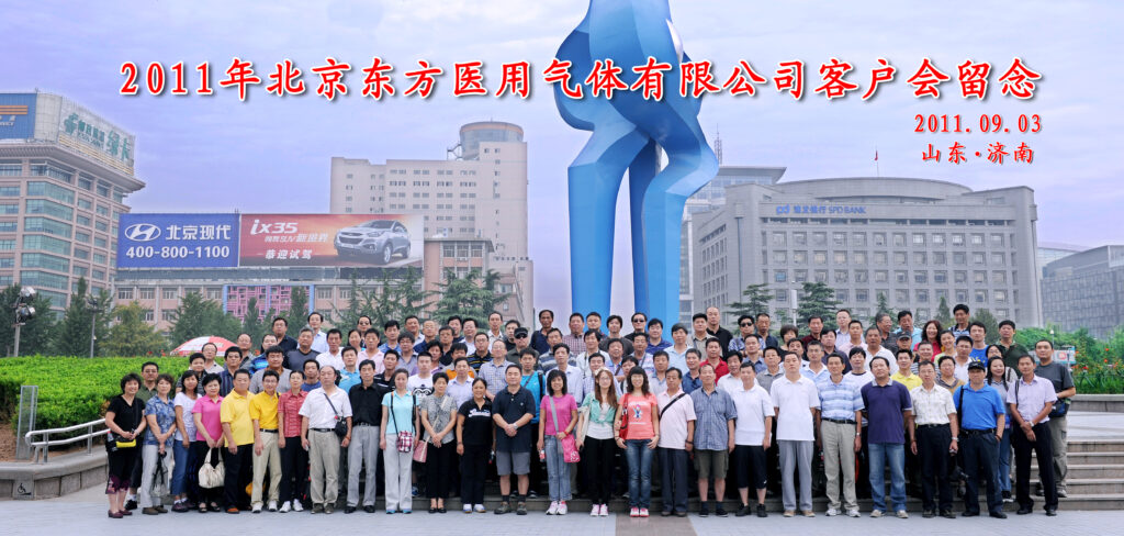 2011 年 9 月 3 日,在素有 “泉城” 美誉的山东济南,北京东方医用气体有限公司成功举办了一场意义非凡的客户会。这张合影,定格了公司与众多客户相聚时的珍贵瞬间。